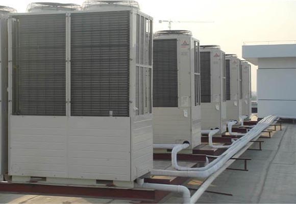 風(fēng)冷式工業(yè)冷水機(jī)也可以做成分體式,將冷凝器直接放到室外去(稱(chēng)室外機(jī)),蒸發(fā)器和壓縮機(jī)放在室內(nèi)(稱(chēng)室內(nèi)機(jī))。但考慮冷媒在冷凝器和蒸發(fā)器間傳送過(guò)程中的吸熱等問(wèn)題,室內(nèi)機(jī)和室外機(jī)間的距離最好控制在6米以?xún)?nèi),另外,輸送冷媒的銅管需要做保溫處理。風(fēng)扇的供電電纜及控制電纜可以和銅管一起布線走,這樣空調(diào)廠房只需開(kāi)洞穿管即可。